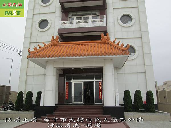 防滑止滑-台中市大樓白色人造石外牆污垢清洗